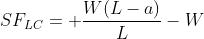 There is reaction due to support A, point load at C and reaction due to support B is present in left side of section X-X and just right of point C. Reaction due to support A is upward it taken as +ve, point load at C is downward it taken as -ve and reaction due to support B is upward it is taken as +ve; because of by sign conventions upward forces left side of section are taken as +ve and downward forces are -ve. Therefore,